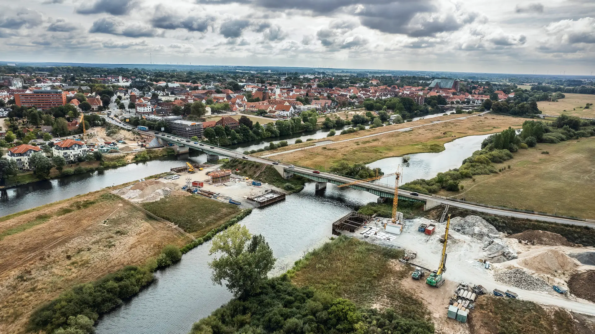 Verden, Germany – Federal Highway B215 in Lower Saxony is a crucial traffic connection in the north-south direction for the region between Nienburg an der Weser and Rotenburg an der Wuemme. This section of the highway includes the Aller bridge in Verden, known as the “North Bridge”, which no longer can handle the existing volume of traffic. In addition, the outdated steel deck bridge now has a restricted load-bearing capacity and no longer meets the modern requirements for a bridge structure. And above all, there is a clear deficit when it comes to traffic safety, for example lane width or the required width of pedestrian and bicycle paths. Cost-intensive maintenance of the existing bridge structure would only have managed to restore the load-bearing capacity, but would not have improved traffic safety.